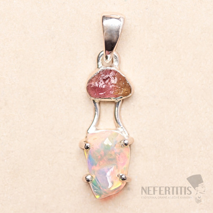 Ethiopian opal and pink tourmaline pendant silver Ag 925 LOT8