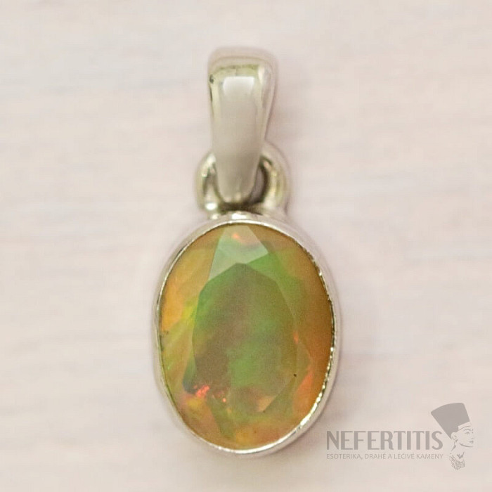 Modern and elegant silver pendant with cut Ethiopian opal, with a beautiful play of colors. Ag 925. Impressive and elegant jewelry, evoking joy and feelings of harmony from the look. The rainbow play of colors is enhanced by the individual facets of the cut. Ethiopian opals, compared to Australian opals, literally luxuriate in neon-bright reflections of colors. Although they don't look like it at first glance, the fireworks of colors that burst from the opal in this pendant with every light hit will enchant not only you, but your entire surroundings. You are buying the jewelry pictured.