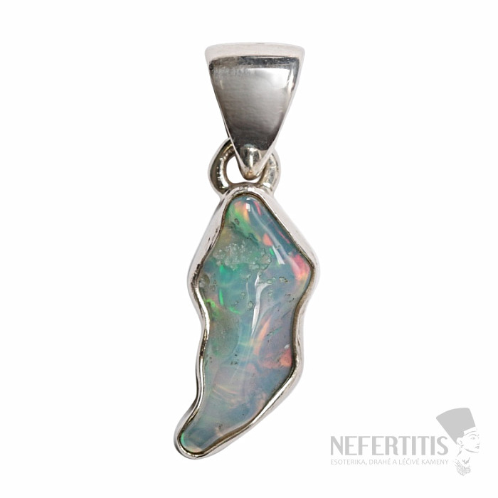 Modern and elegant silver pendant with raw polished opal, with a beautiful play of colors. Ag 925. Impressive and elegant jewelry, evoking joy and feelings of harmony from the look. Ethiopian opals, compared to Australian opals, literally luxuriate in neon-bright reflections of colors. Although they don't look like it at first glance, the fireworks of colors that burst from the opal in this pendant with every light hit will enchant not only you, but your entire surroundings. You are buying the jewelry pictured.