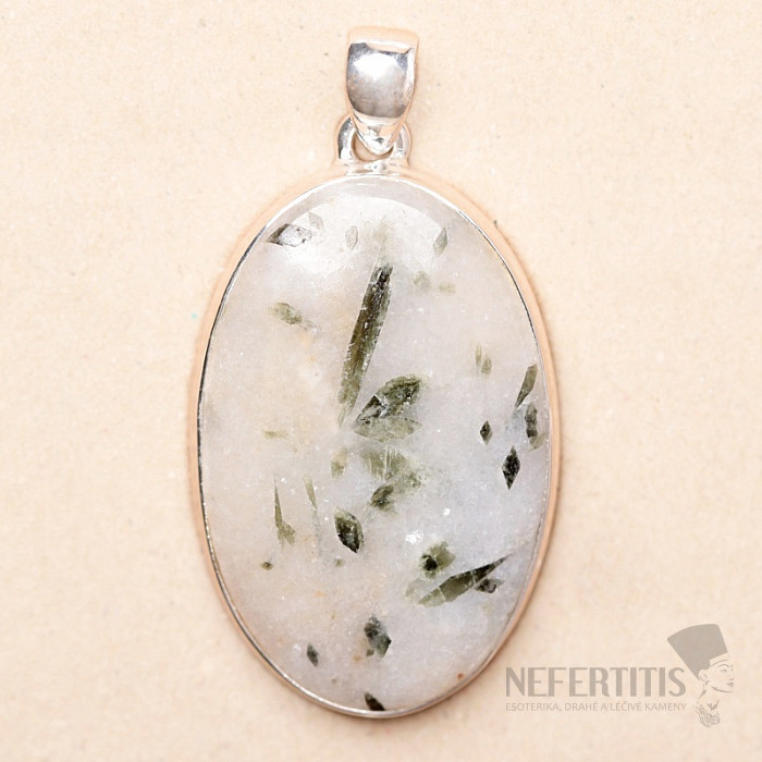 Green tourmaline in crystal pendant silver Ag 925 P231