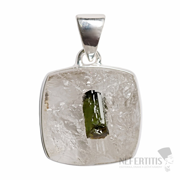Green tourmaline in crystal pendant silver Ag 925 P272
