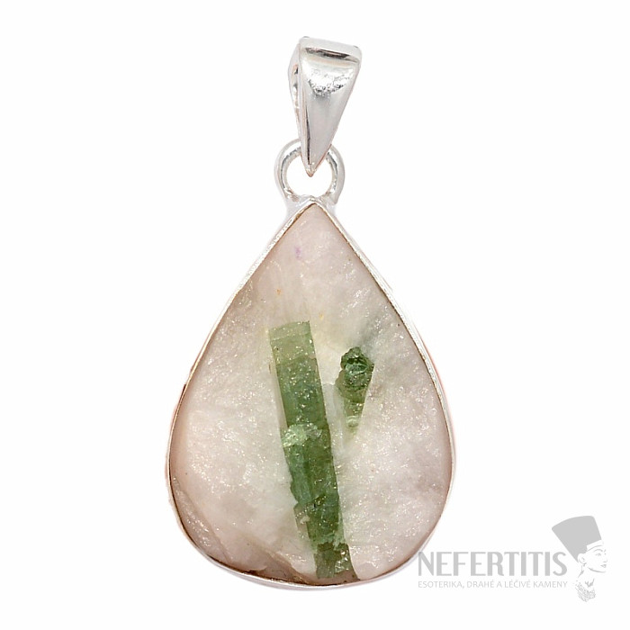 Unique pendant made of green tourmaline with quartz in silver , which suppresses stress, anger, fear and negativity. A charming piece of jewelry in which the delicate green color of verdelite tourmaline, which brings abundance and prosperity, is combined with the creamy white color of quartz, which highlights the beauty of tourmaline. Quartz has the same energetic properties as crystal, so it strengthens the effects of stones in its vicinity, it is a universal and powerful stone with healing energy. This pendant is particularly beautiful not only in its shape, but above all in its workmanship. Ag 925. You are buying the jewelry shown directly.