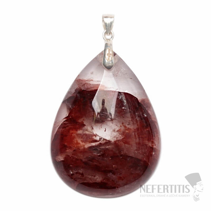 Silver pendant with hematoid - a crystal that has hematite inclusions, which create beautiful patterns of orange to blood red color in the crystal. Ag 925. You are purchasing the jewelry shown directly.