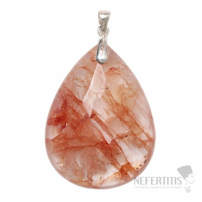 Silver pendant with hematoid - a crystal that has hematite inclusions, which create beautiful patterns of orange to blood red color in the crystal. Ag 925. You are purchasing the jewelry shown directly.