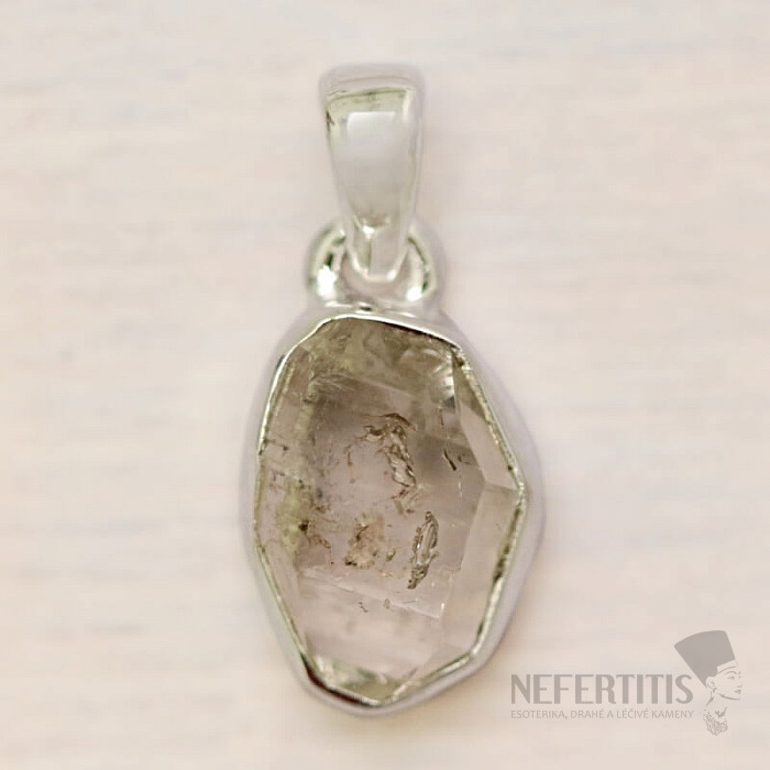 Attractive silver pendant with an exceptionally beautiful Herkimer diamond - a rare type of crystal . Let yourself be enchanted by the beauty of this unique crystal and the glitter of light on the surfaces of its crystal. The Herkimer diamond is unique in that, unlike other crystals, its crystal forms a "tip" at both ends of the crystal. Thanks to this, it is the best crystal for jewelry production, moreover, it is relatively rare on the market. The pendant is equipped with a beautifully shaped crystal with high crystal purity - a stone of unique quality! The pendant has a very gentle yet elegant impression. Ag 925. You are buying directly depicted jewelry.