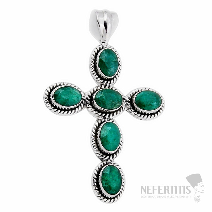 A captivating and exceptional silver pendant in the shape of a cross with cut Indian emeralds. Ag 925. You are purchasing the jewelry pictured.