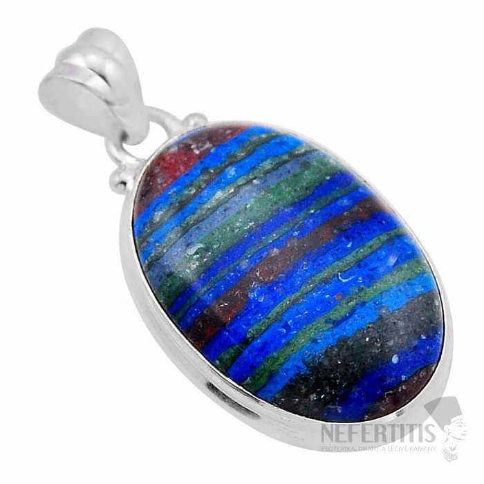Charming silver pendant made of cheerful looking rainbow calcite. Ag 925. Rainbow calcite is characterized by stripes of vivid, bright colors, especially turquoise, orange, red, green and yellow. It is obtained from a mine located in the state of Chihuahua, Mexico, and comes from an artificial sedimentary rock created by humans. Beautiful and distinctive jewelry. This pendant stands out not only for its color, but also for the beautiful and regular pattern of the stone. You are buying the jewelry shown directly.