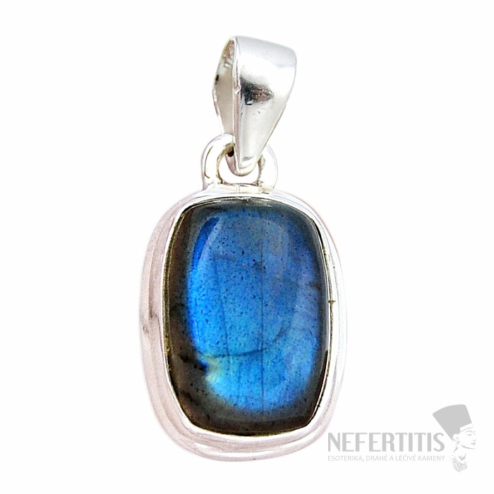 A captivating and exceptional silver pendant with first-class natural labradorite with a distinctive rainbow play of colors, in which the bright blue-gold color magically shines when the light hits it. Ag 925. Let yourself be enchanted by the beauty and play of the bright blue color of labradorite. Thanks to the play of colors, this is an attractive and unmissable piece of jewelry. You are purchasing the jewelry shown directly.