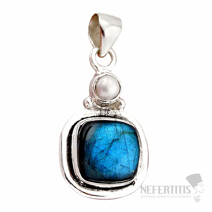 A captivating and exceptional silver pendant with first-class natural labradorite with a distinctive rainbow play of colors, in which the bright blue-gold color and white pearl magically shine when the light hits it. Ag 925. Let yourself be enchanted by the beauty and play of the bright blue color of labradorite. Thanks to the play of colors, this is an attractive and unmissable piece of jewelry. You are purchasing the jewelry pictured.