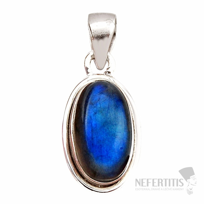 A captivating and exceptional silver pendant with first-class natural labradorite with a distinctive rainbow play of colors, in which the bright blue-gold color magically shines when the light hits it. Ag 925. Let yourself be enchanted by the beauty and play of the bright blue color of labradorite. Thanks to the play of colors, this is an attractive and unmissable piece of jewelry. You are purchasing the jewelry shown directly.