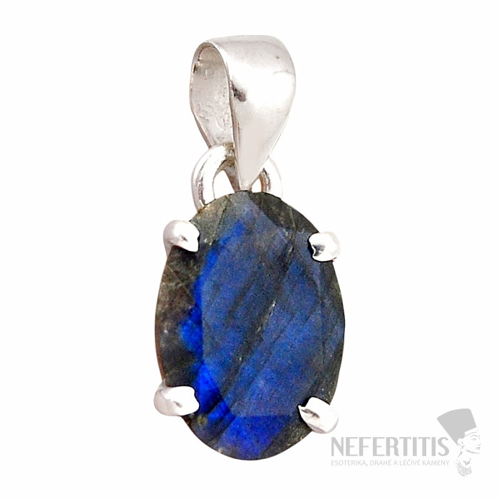 A captivating and exceptional silver pendant with first-class cut natural labradorite with a distinctive rainbow play of colors, in which the bright blue-gold color magically shines when the light hits it. Ag 925. Let yourself be enchanted by the beauty and play of the bright blue color of labradorite. Thanks to the play of colors, this is an attractive and unmissable piece of jewelry. You are purchasing the jewelry shown directly.