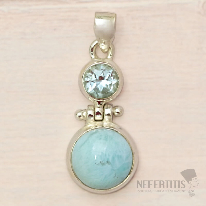 A charming pendant made of silver with a beautiful and high-quality cabochon of rare larimar, which resembles the play of sunlight on the surface of the sea, and cut blue topaz . The jewelry is handmade, the larimar is carefully selected with a distinct blue color. Ag 925. You are purchasing the jewelry pictured directly.