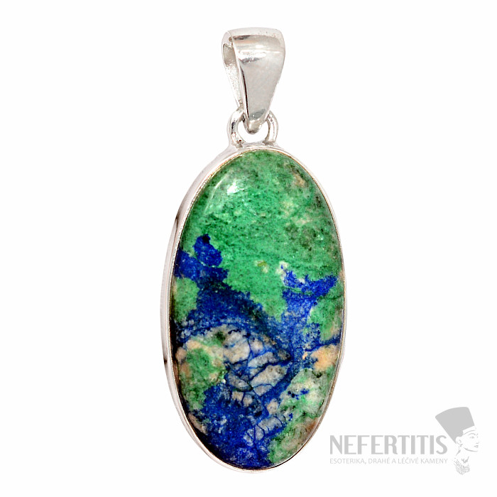 Exclusive silver pendant with a distinctive malachite in a beautifully dark blue azurite. Ag 925. The combination of malachite with azurite reminiscent of a bird's eye view of planet Earth makes this jewelry unusual and very decorative. You are purchasing the jewelry pictured.