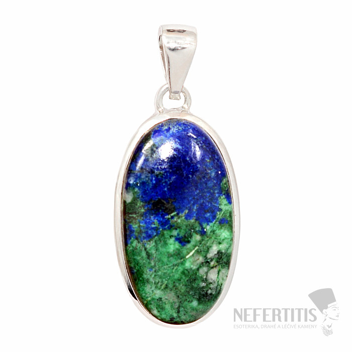 Exclusive silver pendant with a distinctive malachite in a beautifully dark blue azurite. Ag 925. The combination of malachite with azurite reminiscent of a bird's eye view of planet Earth makes this jewelry unusual and very decorative. You are purchasing the jewelry pictured.