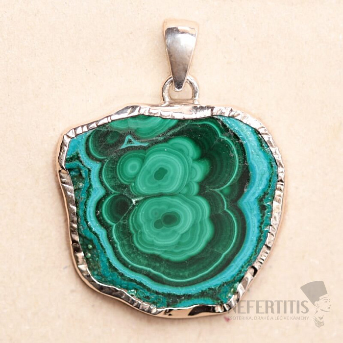 Malachite in chrysocolla slice pendant silver Ag 925 P16