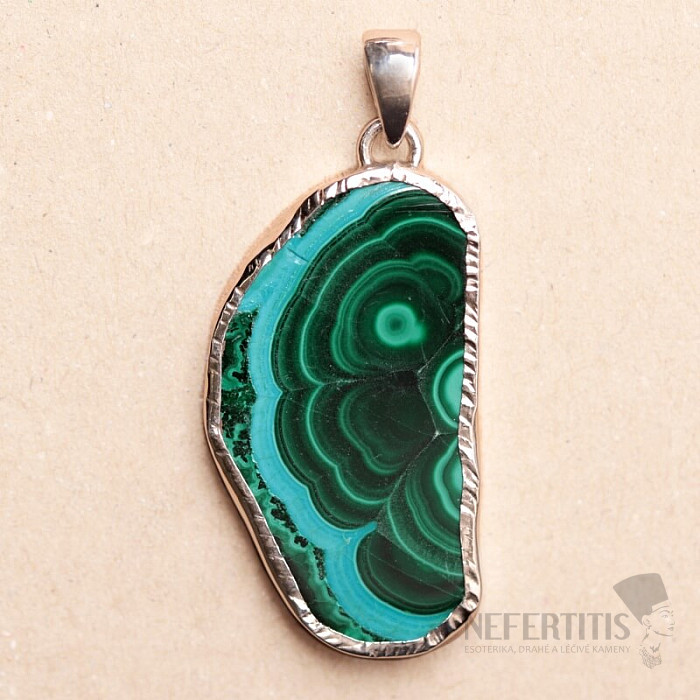 Malachite in chrysocolla slice pendant silver Ag 925 P12
