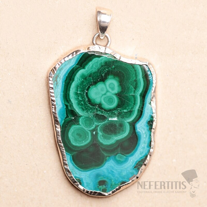 Malachite in chrysocolla slice pendant silver Ag 925 P14