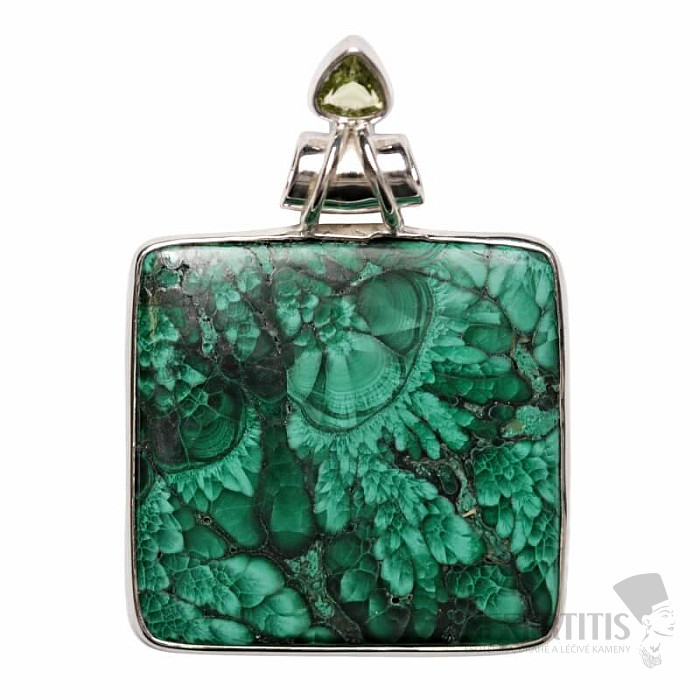 Silver pendant with malachite , which will enchant everyone with its deep green color and unique design, and cut olivine. Ag 925. You are purchasing the jewelry shown directly. Malachite has been considered a strong… more »
