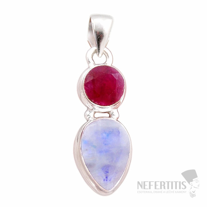 Exceptionally beautiful silver pendant with cut rainbow moonstone and cut Indian ruby. Ag 925. Moonstone will bring into your life not only the magic of its colors, but above all love, passion, desire, protection, wisdom, and at the same time reconciliation and peace. You are buying the jewelry pictured.