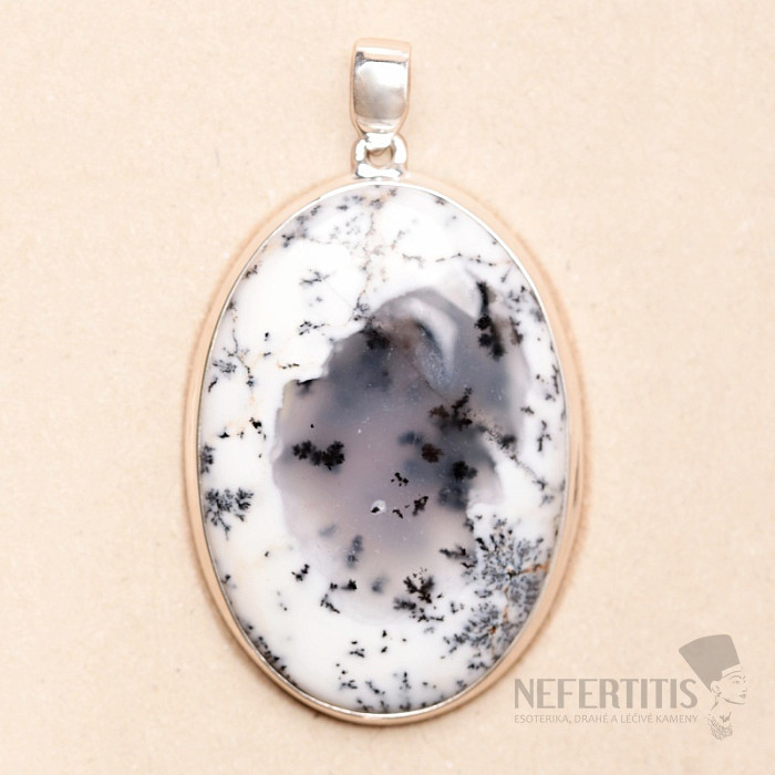 Charming silver pendant with dendritic opal , which with its white and gray color and beautiful pattern of inclusions evokes the image of a snowy landscape as if from the pen of ancient Chinese landscape painters. Gentle and delicate, yet distinctive and attractive jewelry. An exceptionally beautiful stone, which we rarely have in our offer. Ag 925. You are buying the jewelry shown directly.