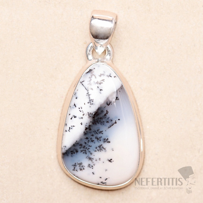 Charming silver pendant with dendritic opal , which with its white and gray color and beautiful pattern of inclusions evokes the image of a snowy landscape as if from the pen of ancient Chinese landscape painters. Gentle and delicate, yet distinctive and attractive jewelry. An exceptionally beautiful stone, which we rarely have in our offer. Ag 925. You are buying the jewelry shown directly.