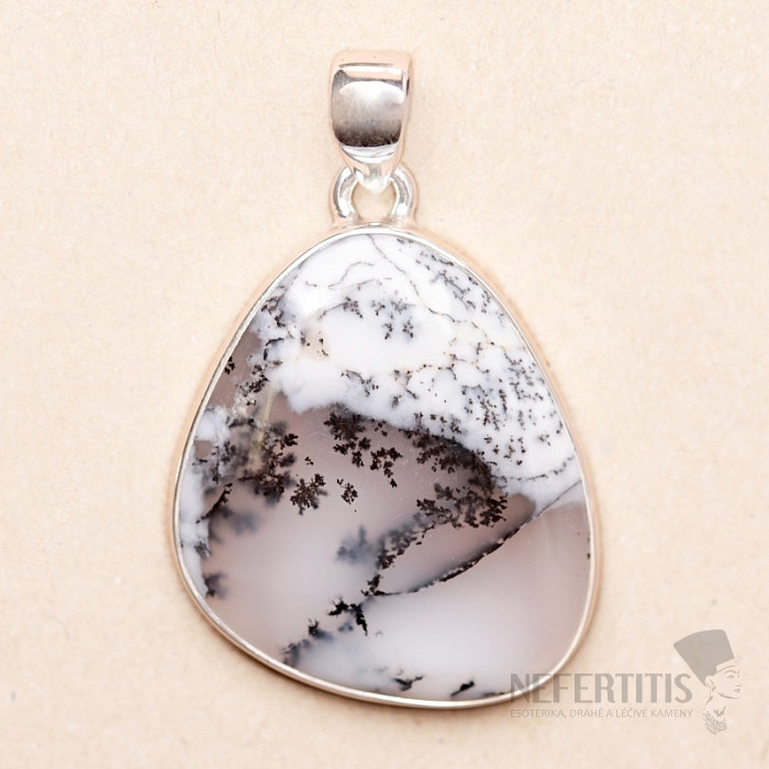 Charming silver pendant with dendritic opal , which with its white and gray color and beautiful pattern of inclusions evokes the image of a snowy landscape as if from the pen of ancient Chinese landscape painters. Gentle and delicate, yet distinctive and attractive jewelry. An exceptionally beautiful stone, which we rarely have in our offer. Ag 925. You are buying the jewelry shown directly.
