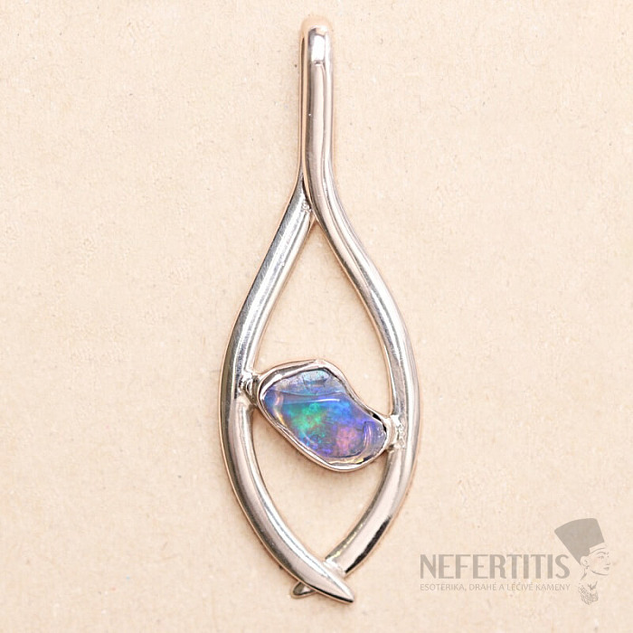 Modern and elegant silver pendant with raw polished opal, with a beautiful play of colors. Ag 925. Impressive and elegant jewelry, evoking joy and feelings of harmony from the look. Ethiopian opals, compared to Australian opals, literally luxuriate in neon-bright reflections of colors. Although they don't look like it at first glance, the fireworks of colors that burst from the opal in this pendant with every light hit will enchant not only you, but your entire surroundings. You are buying the jewelry pictured.