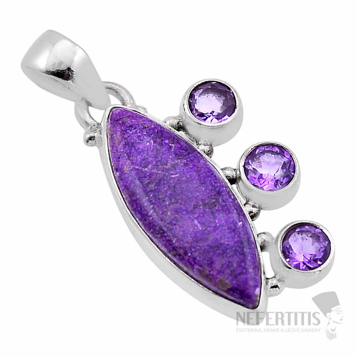 Beautiful silver pendant with purpurite and cut amethysts. Ag 925. No one will miss the rich purple color in this pendant! Ag 925. You are purchasing the jewelry pictured.