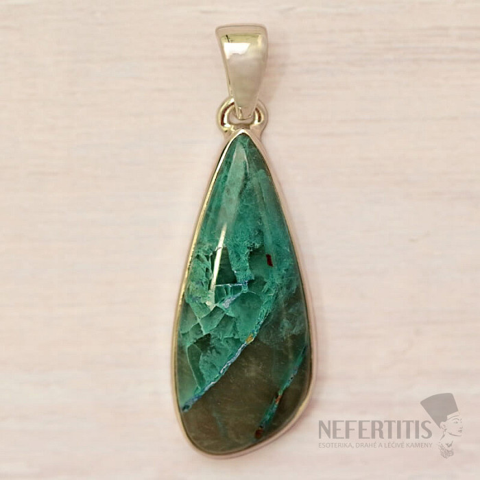 Charming silver pendant with rare and collector-valued natural Quantum quattro. Ag 925. Quantum quattro is a combination of four minerals - shattuckite, dioptase, malachite and chrysocolla. Each piece of jewelry is original, unique and thanks to the color combination and arrangement of minerals, it stimulates the imagination, reminiscent of a bird's eye view of the Earth. You will have a beautiful piece of jewelry that no one will miss, suitable for various occasions. You are buying the jewelry shown directly.