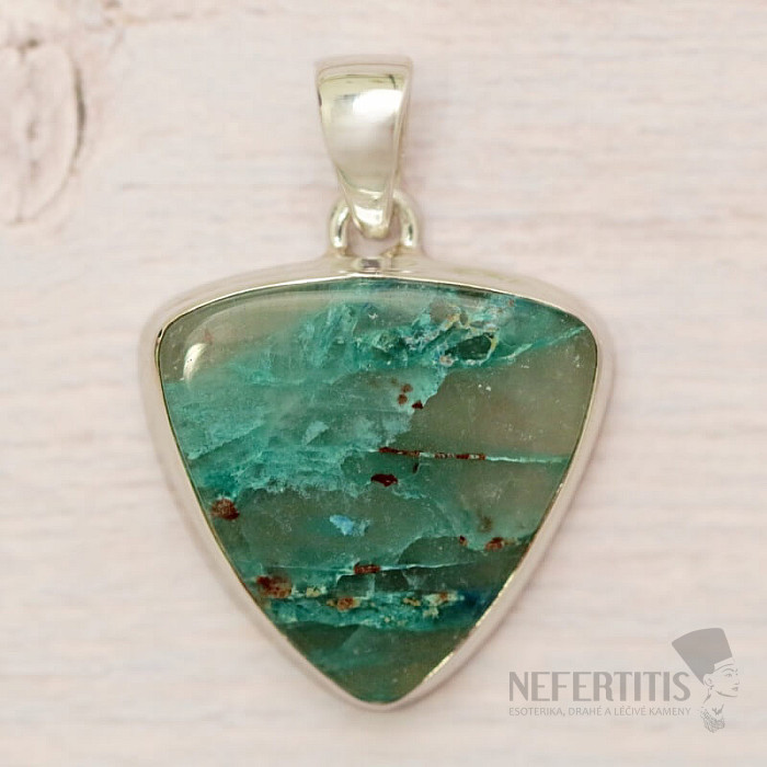 Charming silver pendant with rare and collector-valued natural Quantum quattro. Ag 925. Quantum quattro is a combination of four minerals - shattuckite, dioptase, malachite and chrysocolla. Each piece of jewelry is original, unique and thanks to the color combination and arrangement of minerals, it stimulates the imagination, reminiscent of a bird's eye view of the Earth. You will have a beautiful piece of jewelry that no one will miss, suitable for various occasions. You are buying the jewelry shown directly.