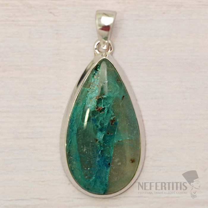 Charming silver pendant with rare and collector-valued natural Quantum quattro. Ag 925. Quantum quattro is a combination of four minerals - shattuckite, dioptase, malachite and chrysocolla. Each piece of jewelry is original, unique and thanks to the color combination and arrangement of minerals, it stimulates the imagination, reminiscent of a bird's eye view of the Earth. You will have a beautiful piece of jewelry that no one will miss, suitable for various occasions. You are buying the jewelry shown directly.