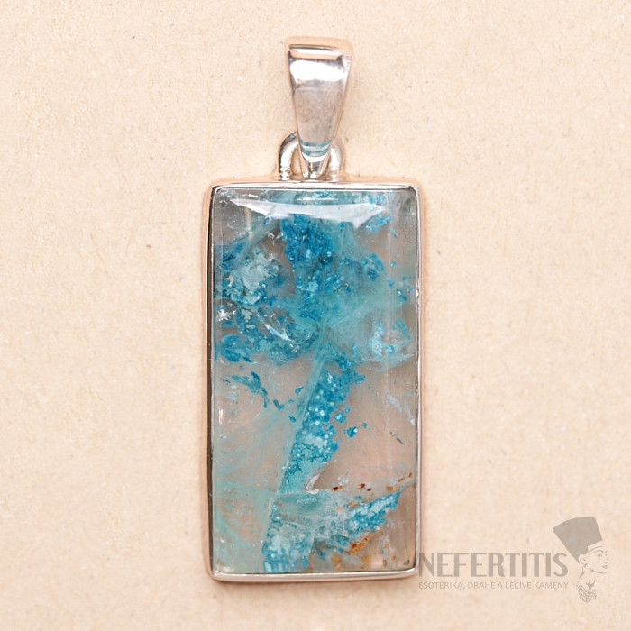 Charming silver pendant with rare and collector-valued natural Quantum quattro. Ag 925. Quantum quattro is a combination of four minerals - shattuckite, dioptase, malachite and chrysocolla. Each piece of jewelry is original, unique and thanks to the color combination and arrangement of minerals, it stimulates the imagination, reminiscent of a bird's eye view of the Earth. You will have a beautiful piece of jewelry that no one will miss, suitable for various occasions. You are buying the jewelry shown directly.