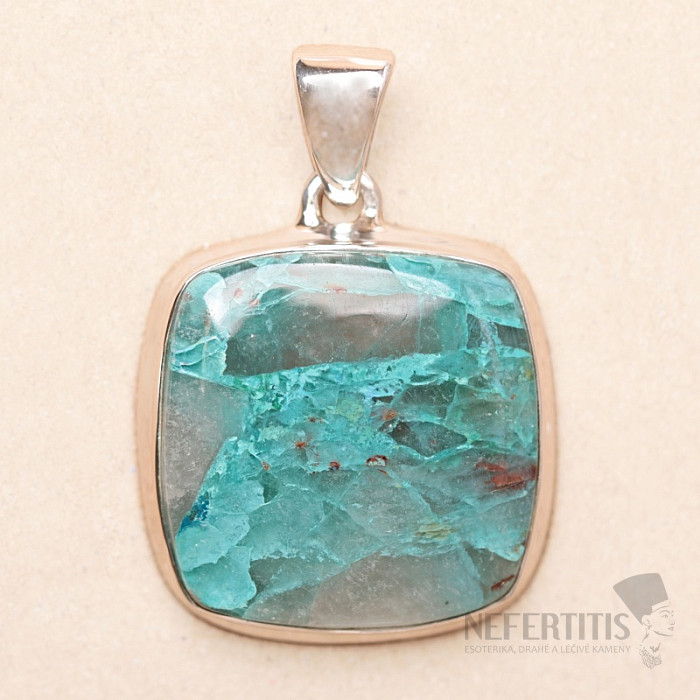 Charming silver pendant with rare and collector-valued natural Quantum quattro. Ag 925. Quantum quattro is a combination of four minerals - shattuckite, dioptase, malachite and chrysocolla. Each piece of jewelry is original, unique and thanks to the color combination and arrangement of minerals, it stimulates the imagination, reminiscent of a bird's eye view of the Earth. You will have a beautiful piece of jewelry that no one will miss, suitable for various occasions. You are buying the jewelry shown directly.