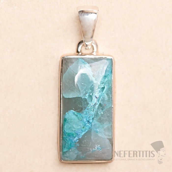 Charming silver pendant with rare and collector-valued natural Quantum quattro. Ag 925. Quantum quattro is a combination of four minerals - shattuckite, dioptase, malachite and chrysocolla. Each piece of jewelry is original, unique and thanks to the color combination and arrangement of minerals, it stimulates the imagination, reminiscent of a bird's eye view of the Earth. You will have a beautiful piece of jewelry that no one will miss, suitable for various occasions. You are buying the jewelry shown directly.