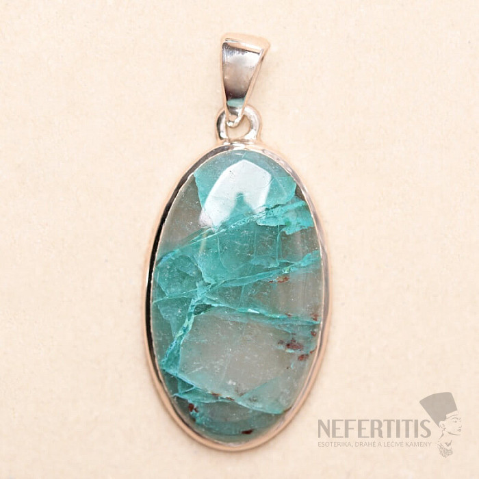 Charming silver pendant with rare and collector-valued natural Quantum quattro. Ag 925. Quantum quattro is a combination of four minerals - shattuckite, dioptase, malachite and chrysocolla. Each piece of jewelry is original, unique and thanks to the color combination and arrangement of minerals, it stimulates the imagination, reminiscent of a bird's eye view of the Earth. You will have a beautiful piece of jewelry that no one will miss, suitable for various occasions. You are buying the jewelry shown directly.