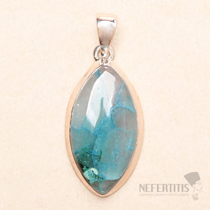 Charming silver pendant with rare and collector-valued natural Quantum quattro. Ag 925. Quantum quattro is a combination of four minerals - shattuckite, dioptase, malachite and chrysocolla. Each piece of jewelry is original, unique and thanks to the color combination and arrangement of minerals, it stimulates the imagination, reminiscent of a bird's eye view of the Earth. You will have a beautiful piece of jewelry that no one will miss, suitable for various occasions. You are buying the jewelry shown directly.