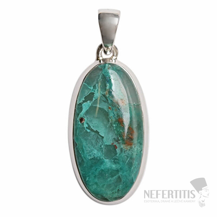 Charming silver pendant with rare and collector-valued natural Quantum quattro. Ag 925. Quantum quattro is a combination of four minerals - shattuckite, dioptase, malachite and chrysocolla. Each piece of jewelry is original, unique and thanks to the color combination and arrangement of minerals, it stimulates the imagination, reminiscent of a bird's eye view of the Earth. You will have a beautiful piece of jewelry that no one will miss, suitable for various occasions. You are buying the jewelry shown directly.