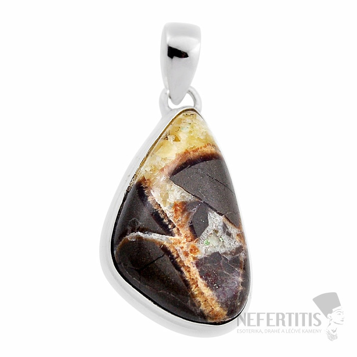 Silver pendant with a beautiful rare septaria in first-class quality. The stone in this pendant is characterized by a clear and sharp pattern and a strong contrast of brown and yellow colors. Ag 925. You are purchasing the jewelry shown directly.
