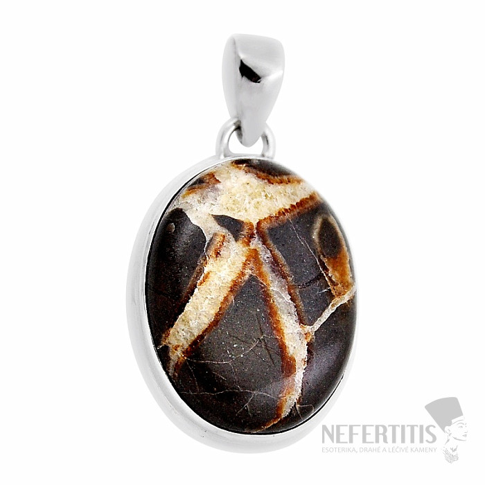 Silver pendant with a beautiful rare septaria in first-class quality. The stone in this pendant is characterized by a clear and sharp pattern and a strong contrast of brown and yellow colors. Ag 925. You are purchasing the jewelry shown directly.