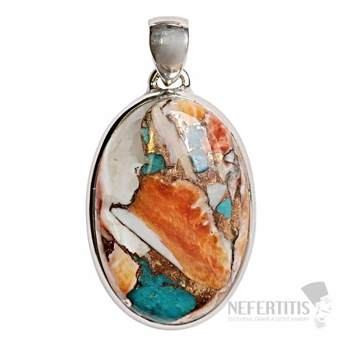 Unique silver pendant made of pieces of shells. Ag 925. The jewelry is made of colored parts of shells connected together with copper into an impressive cabochon. Each mosaic is original in colors and thus in drawing. The beautiful combination of colors gives the jewelry originality and unmistakability. You are buying the jewelry directly depicted.