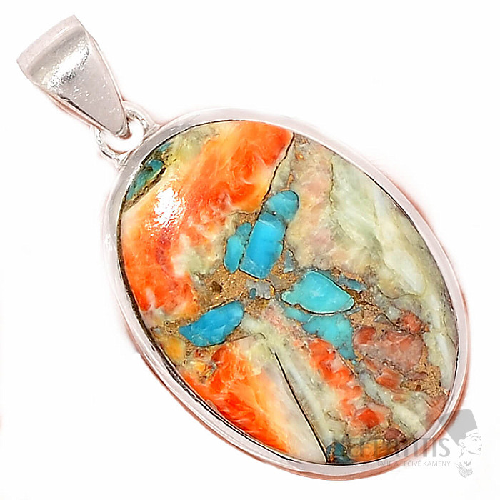Unique silver pendant made of pieces of shells. Ag 925. The jewelry is made of colored parts of shells connected together with copper into an impressive cabochon. Each mosaic is original in colors and thus in drawing. The beautiful combination of colors gives the jewelry originality and unmistakability. You are buying the jewelry directly depicted.