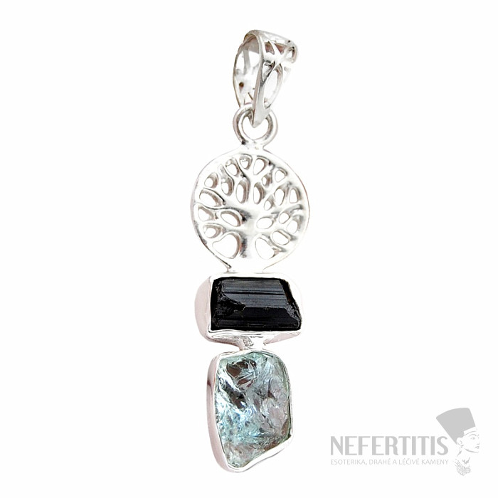 Tourmaline scoryl and raw aquamarine pendant silver Ag 925 48209