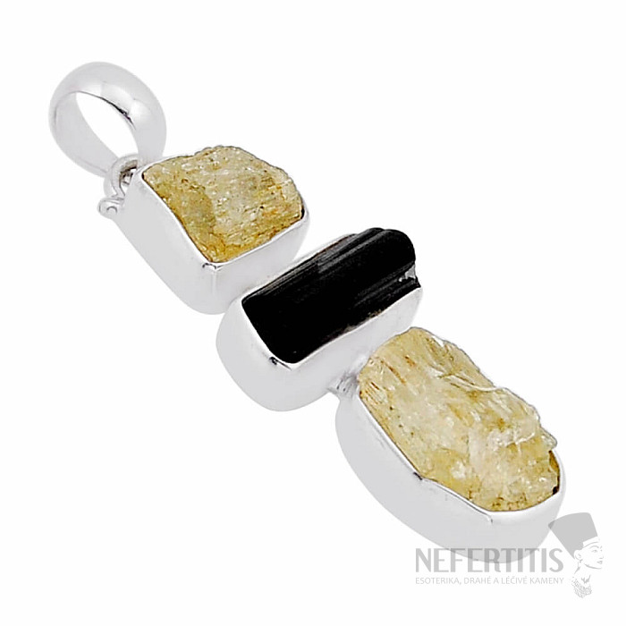 Attractive, elegant, a little mysterious pendant made of raw black tourmaline scoryl and scapolite in silver removes stress, anger, fear and negativity. Black raw tourmalines commonly contain cracks, this is their characteristic feature and proof that you are buying genuine natural tourmaline. Ag 925. You are buying the jewelry pictured.