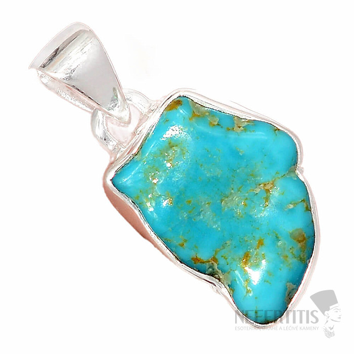 A striking and very elegant silver pendant made of blue turquoise , the so-called "Kingman turquoise", mined in the Kingman area of Arizona, USA. It is a high-quality stone known for its rich blue and green color and characteristic veining. Ag 925. You are purchasing the jewelry pictured.