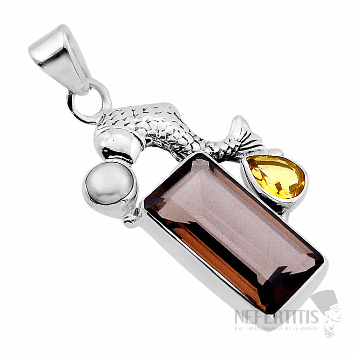 Charming silver pendant with cut brown, cut citrine and white pearl. Ag 925. You are purchasing the jewelry pictured.