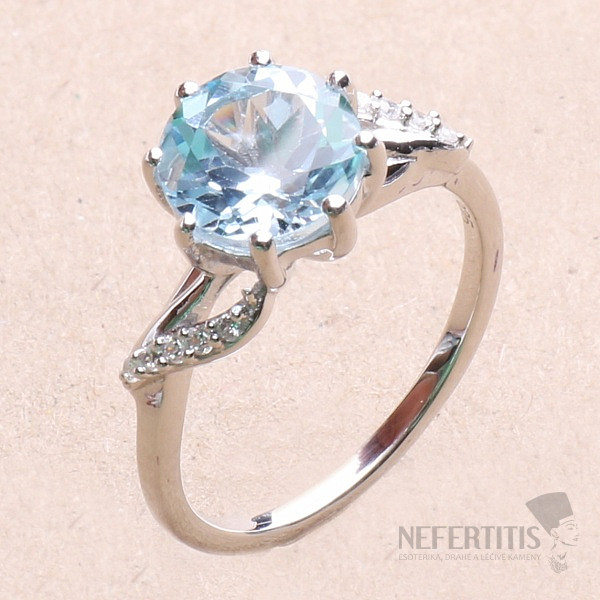 Exclusive silver ring from the Nefertitis Collection design line with a large blue cut natural Blue Sky topaz. Topaz is complemented by cubic zircons for an unmistakable shimmering look. The stone is set in rhodium-plated silver , the surface of which resembles the appearance of white gold, so the ring creates a luxurious impression. Rhodium-plated silver is less prone to surface oxidation (blackening). Beautiful glittering jewelry with a clear stone of jewelery quality, the beauty of which is emphasized by the impact of light on the individual surfaces of the cut, suitable for various occasions. Rhodium plated silver Ag 925/1000, topaz approx. 2.32 carat. We deliver in a high-quality, attractive and elegant box in a combination of paper and suede with magnetic closure.