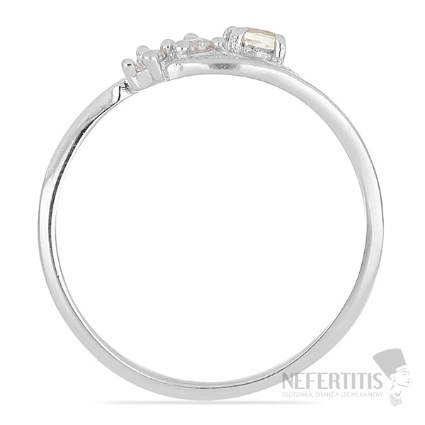 Silver ring from the Nefertitis Collection design line with cut natural Lemon topaz. Topaz is complemented by cubic zircons for an unmistakable shimmering look. The stones are set in rhodium-plated silver , the surface of which resembles the appearance of white gold, so the ring creates a luxurious impression. Rhodium-plated silver is less prone to surface oxidation (blackening). Beautiful glittering jewelry with a clear stone of jewelery quality, the beauty of which is emphasized by the impact of light on the individual surfaces of the cut, suitable for various occasions. Rhodium-plated silver Ag 925/1000, topaz approx. 3 mm, cubic zircons 2x approx. 2 mm. We deliver in a high-quality, attractive and elegant box in a combination of paper and suede with magnetic closure.