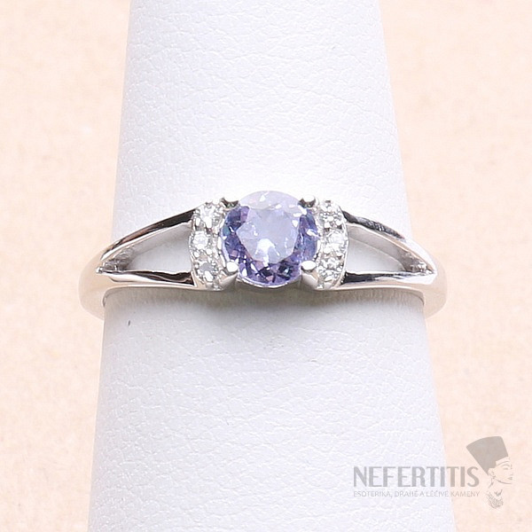 Exclusive silver ring from the Nefertitis Collection design line with blue cut natural tanzanite. Tanzanite is complemented by cubic zircons for an unmistakable shimmering look. The stone is set in rhodium-plated silver , the surface of which resembles the appearance of white gold, so the ring creates a luxurious impression. Rhodium-plated silver is less prone to surface oxidation (blackening). A beautiful glittering piece of jewelry with a clear stone of jewelery quality, the beauty of which is emphasized by the impact of light on the individual cut surfaces, suitable for various occasions. Rhodium plated silver Ag 925/1000, tanzanite 0.45 carat. We deliver jewelry in a standard paper gift box. Illustrative illustration.