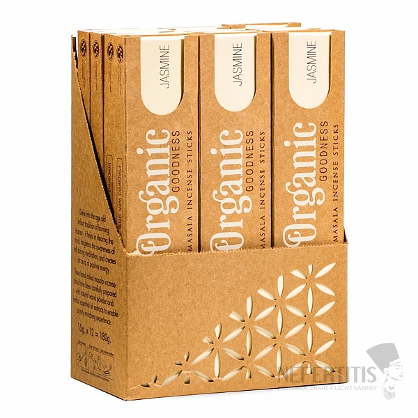 Masala Organic Goodness Jasmine incense sticks with a pungent, sweet jasmine scent. Unique Indian incense sticks on bamboo split, made from high-quality natural woods and herbs. Jasmine is a symbol of love, beauty and… more »