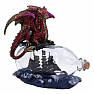 A beautiful statuette of a ruby-colored dragon in a boat with a pirate ship in a bottle sailing on the waves. This beautiful figurine is not only a perfect addition to the collection of any dragon collector, but also a beautiful stand-alone decoration.